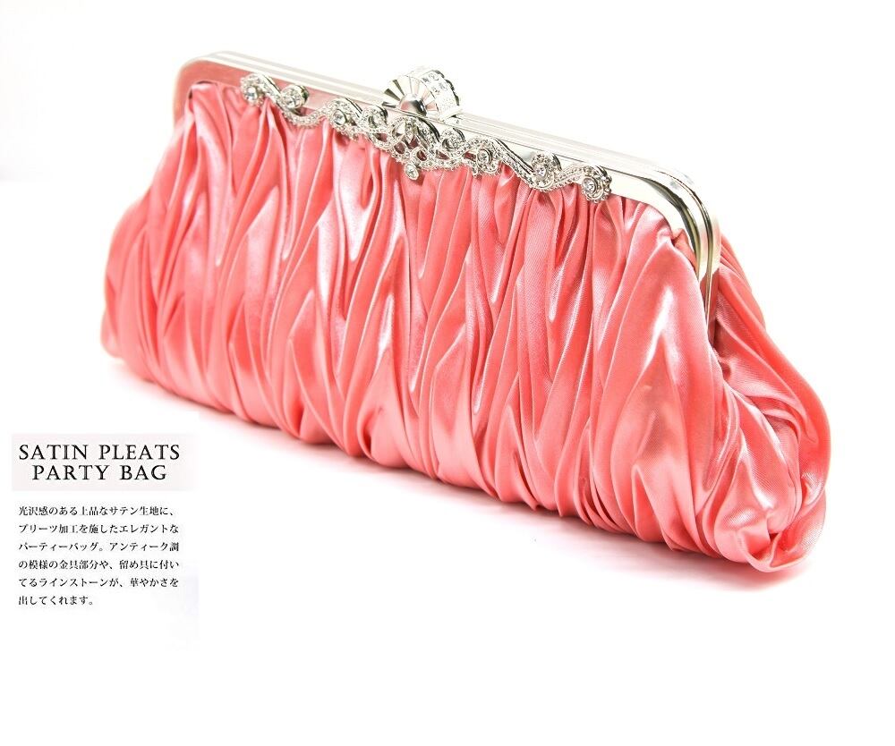 ◆パーティーや結婚式、二次会、等でご使用でき、とても可愛い高級感あふれるサテンプリーツパーティバッグです。