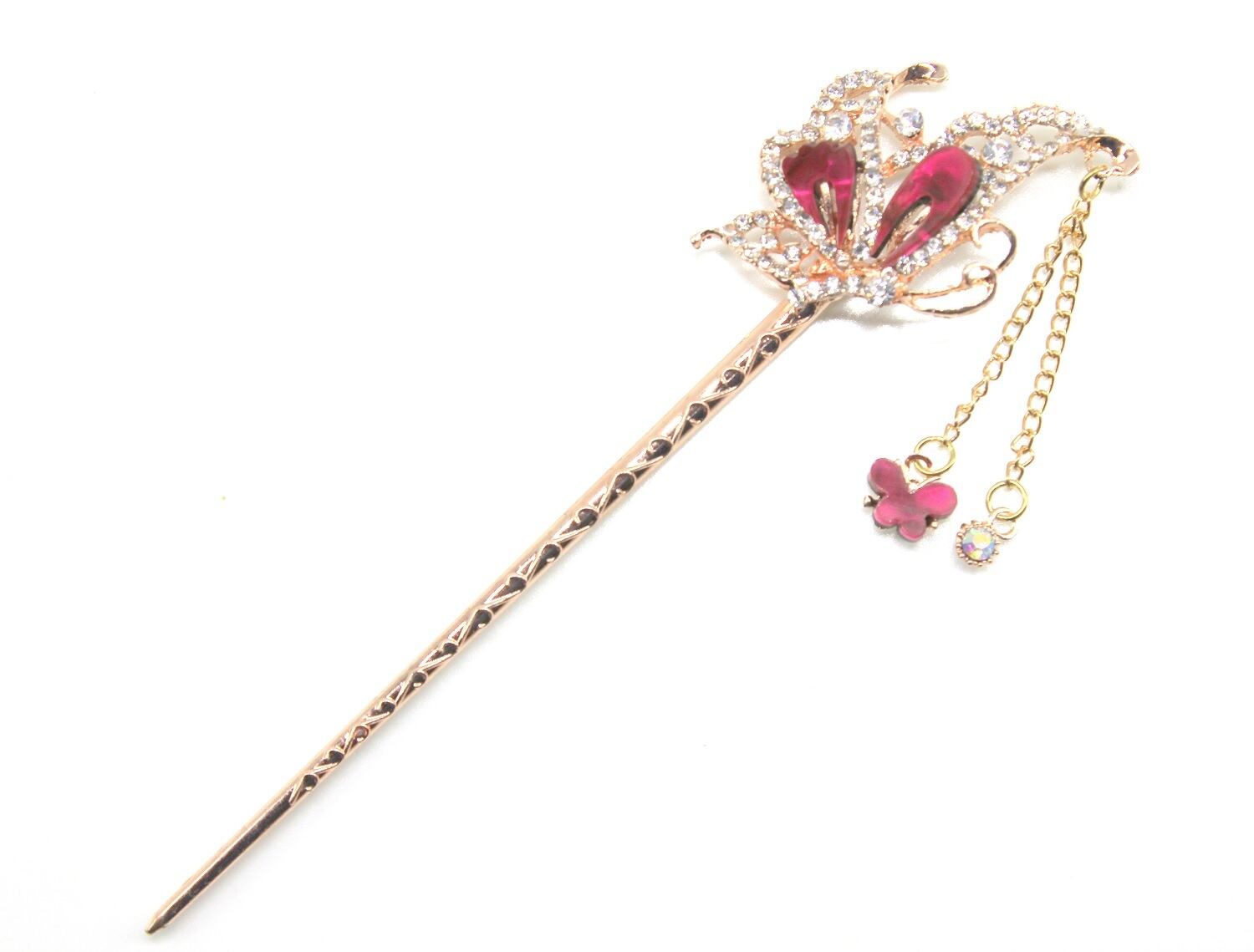 ◆かんざしには2本の(ちょうちょと一粒のラインストーン)のチェーン飾りがあり、時折り揺れ動き、優美に見せます