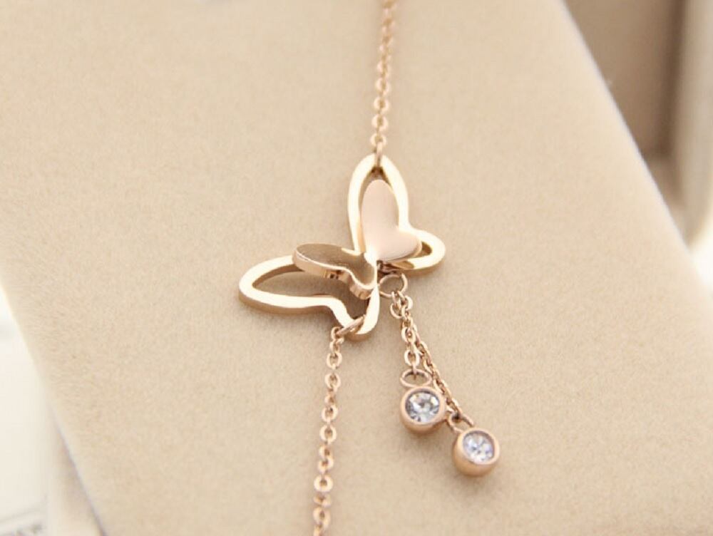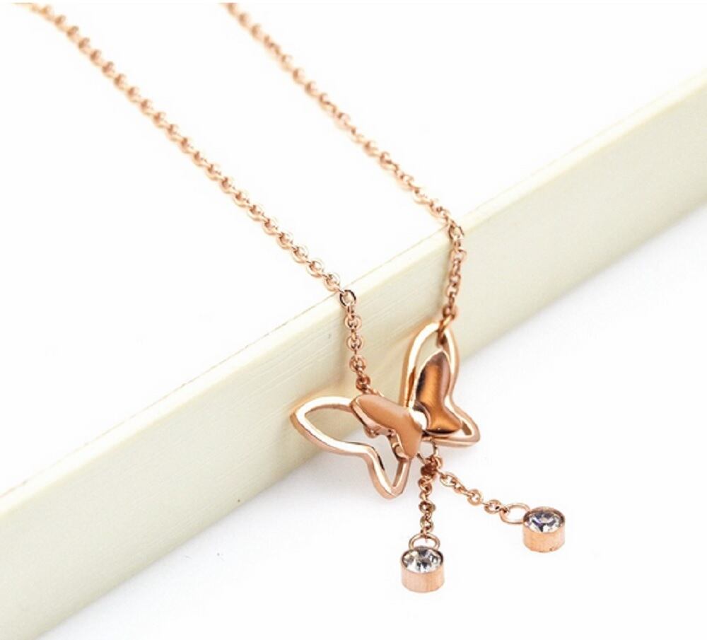 ネックレス 蝶 ちょう CZダイヤ バタフライ ステンレス ピンクゴールド