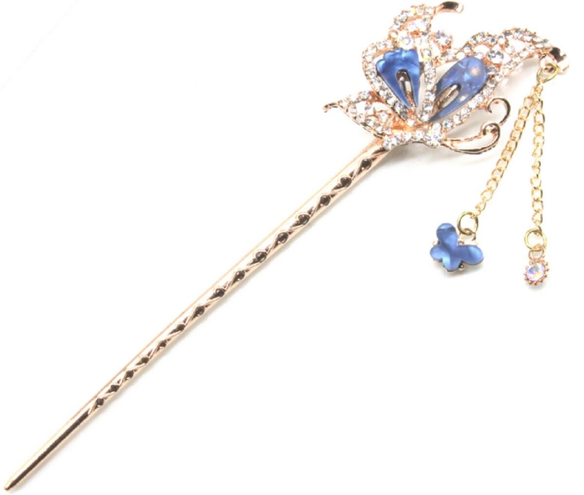 ◆かんざしには2本の(ちょうちょと一粒のラインストーン)のチェーン飾りがあり、時折り揺れ動き、優美に見せます