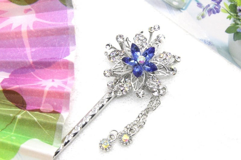 かんざし 髪飾り 一本 和装 クリスタル 水晶 花 フラワー ブルー