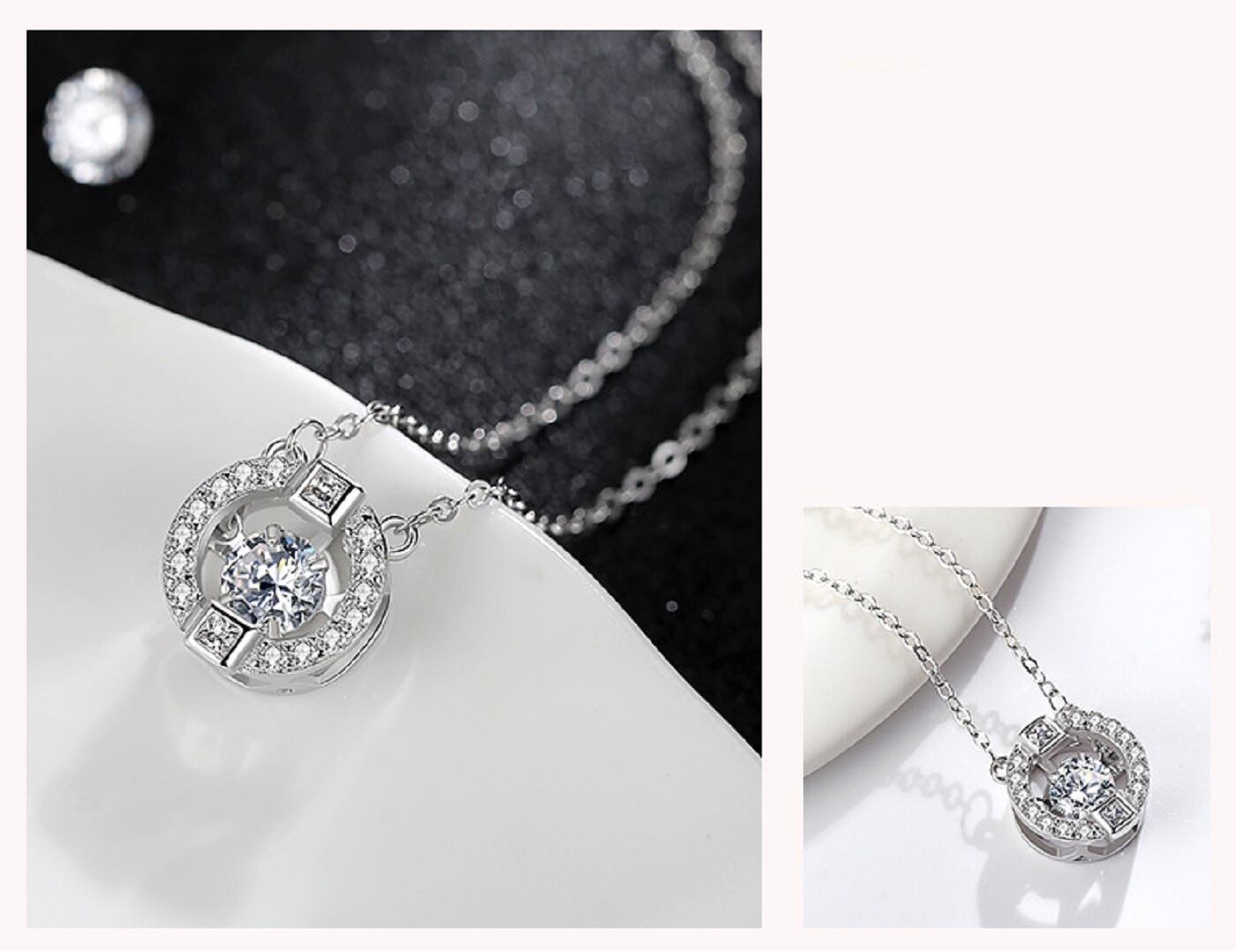 ◆ネックレスセンターに一粒CZ石を豪華に飾り、サークルを小粒CZダイヤモンドで取り巻いているデザインは、気品と洗練された可愛い印象を与えてくれます。