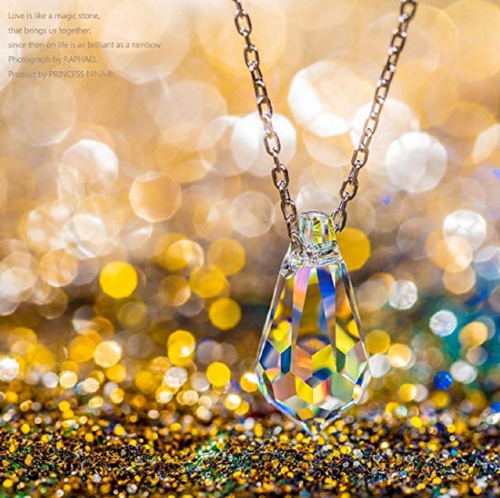 ◆光にあたると、夏らしい鮮やかなレインボー&オーロラから―の色合いがプリズムに輝き、小ぶりのかわいい透明感のあるペンダントトップは注目度・好感度アップ。
