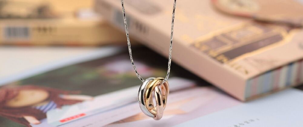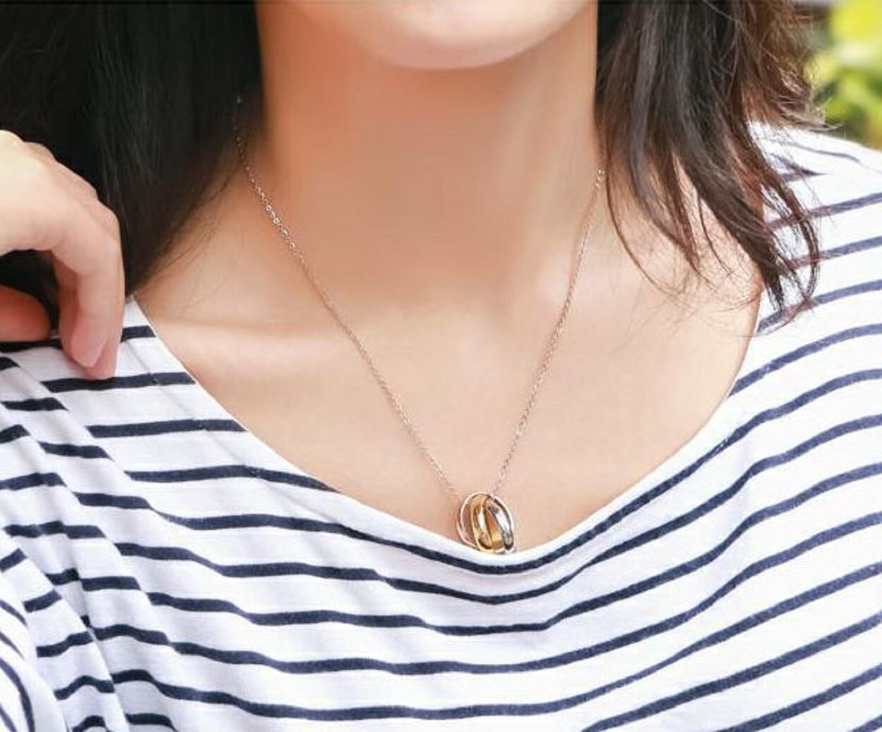 ◆エレガントで華麗な3連3色(ゴールド・シルバー・ピンクゴールド)のステンレスリングネックレスが新登場♪