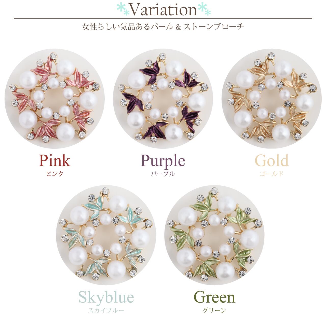 ブローチ フォーマル パール 真珠 キラキラ フラワー 花 リース 型 ピンク