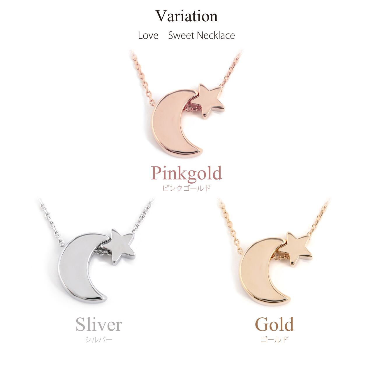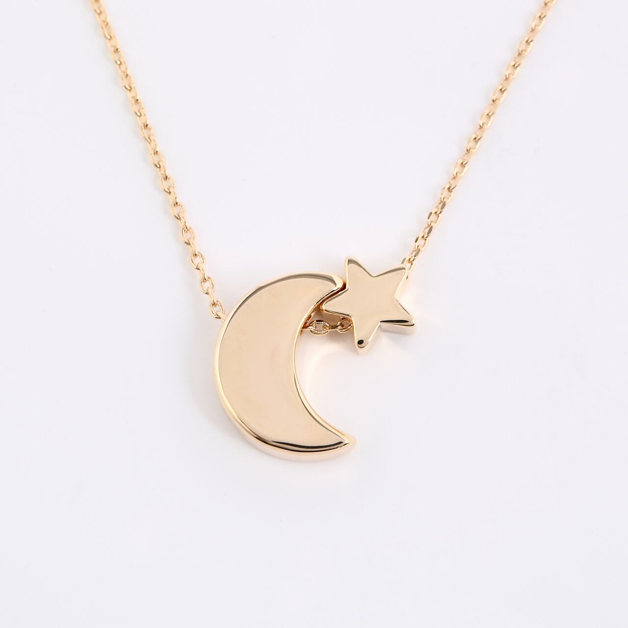 ★優しい色味の風合いで、柔らかい印象がある月と星のピンクゴールドネックレス