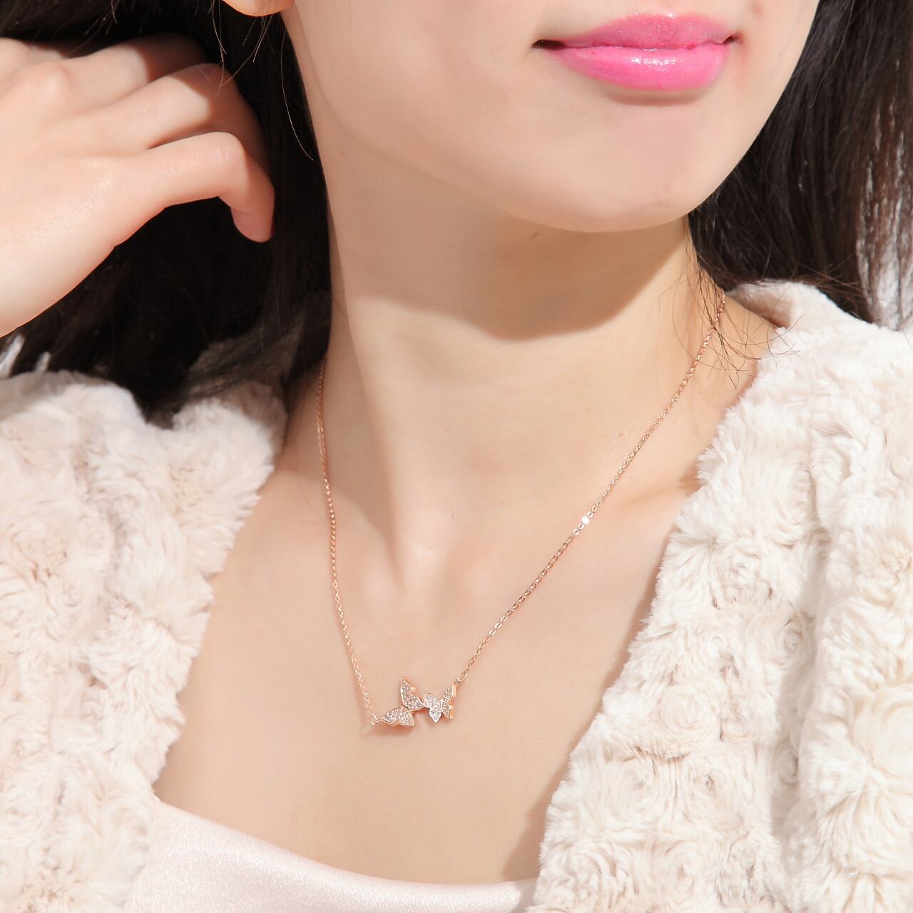 ネックレス レディース バタフライ 蝶 ちょう czダイヤ ピンクゴールド