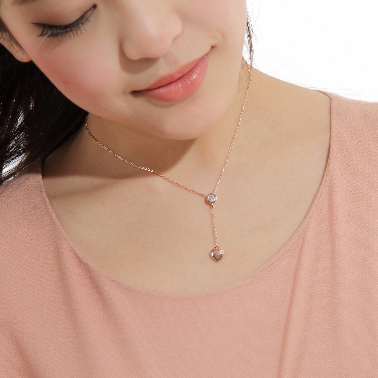 ネックレス レディース ハート 揺れる 一粒 czダイヤ ピンクゴールド