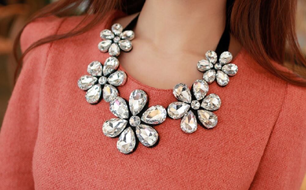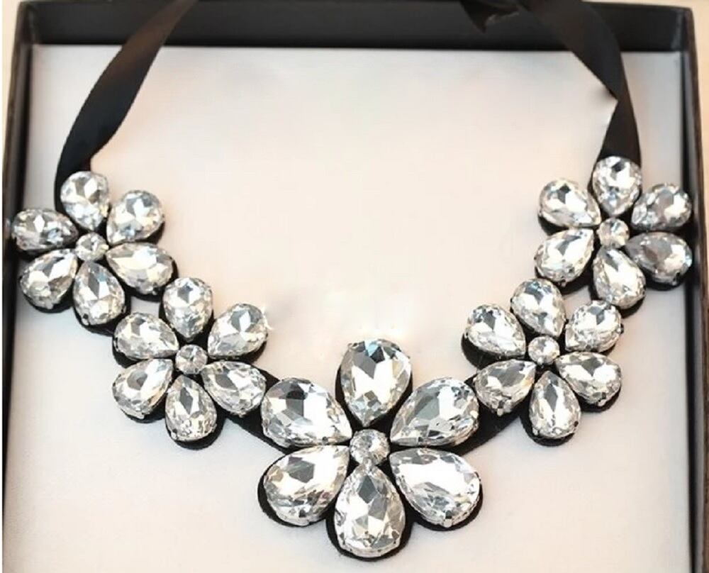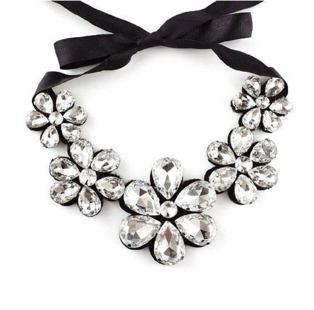 ◆かわいいブラックリボンタイのクリスタル チョーカー フラワーネックレスが新登場です。