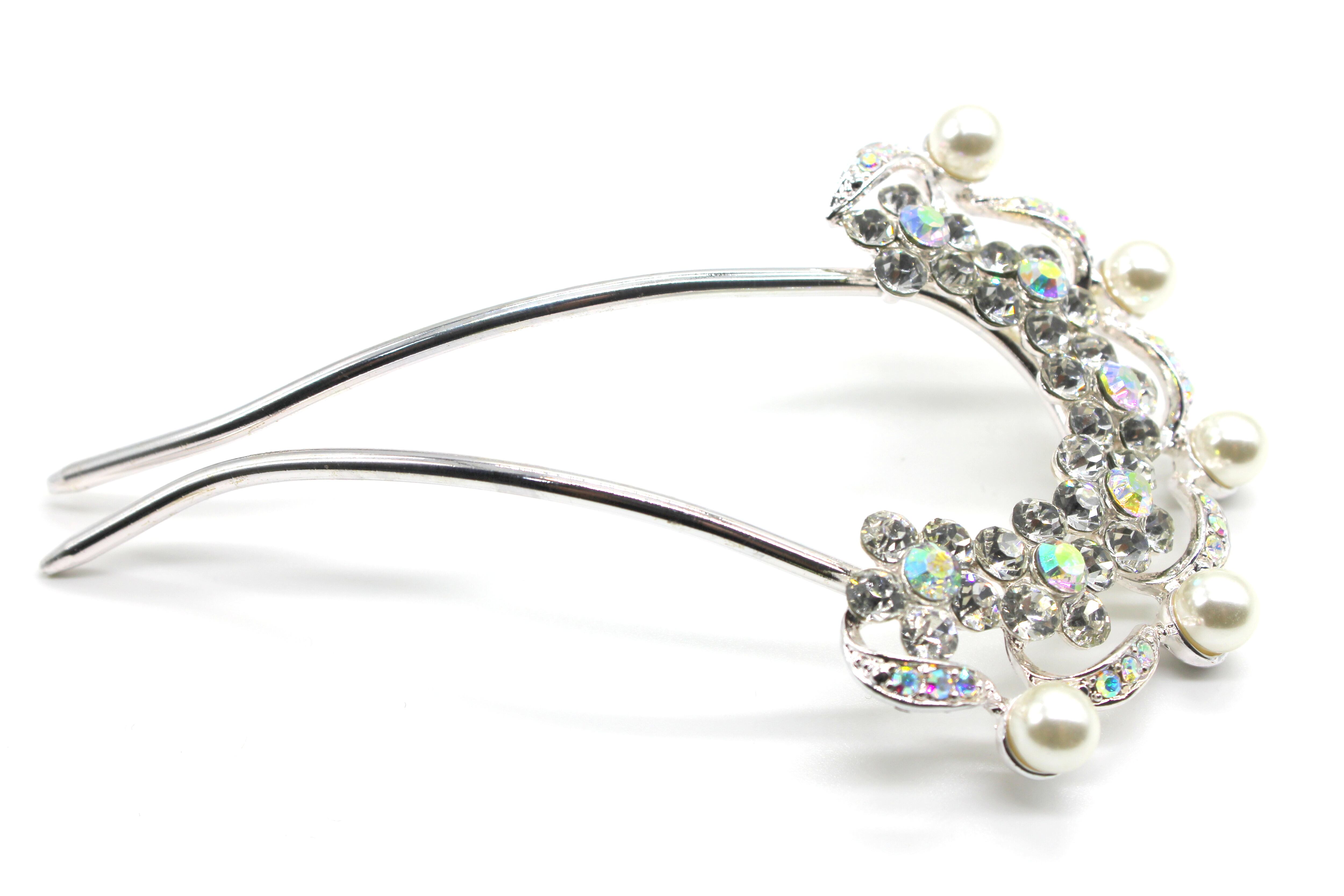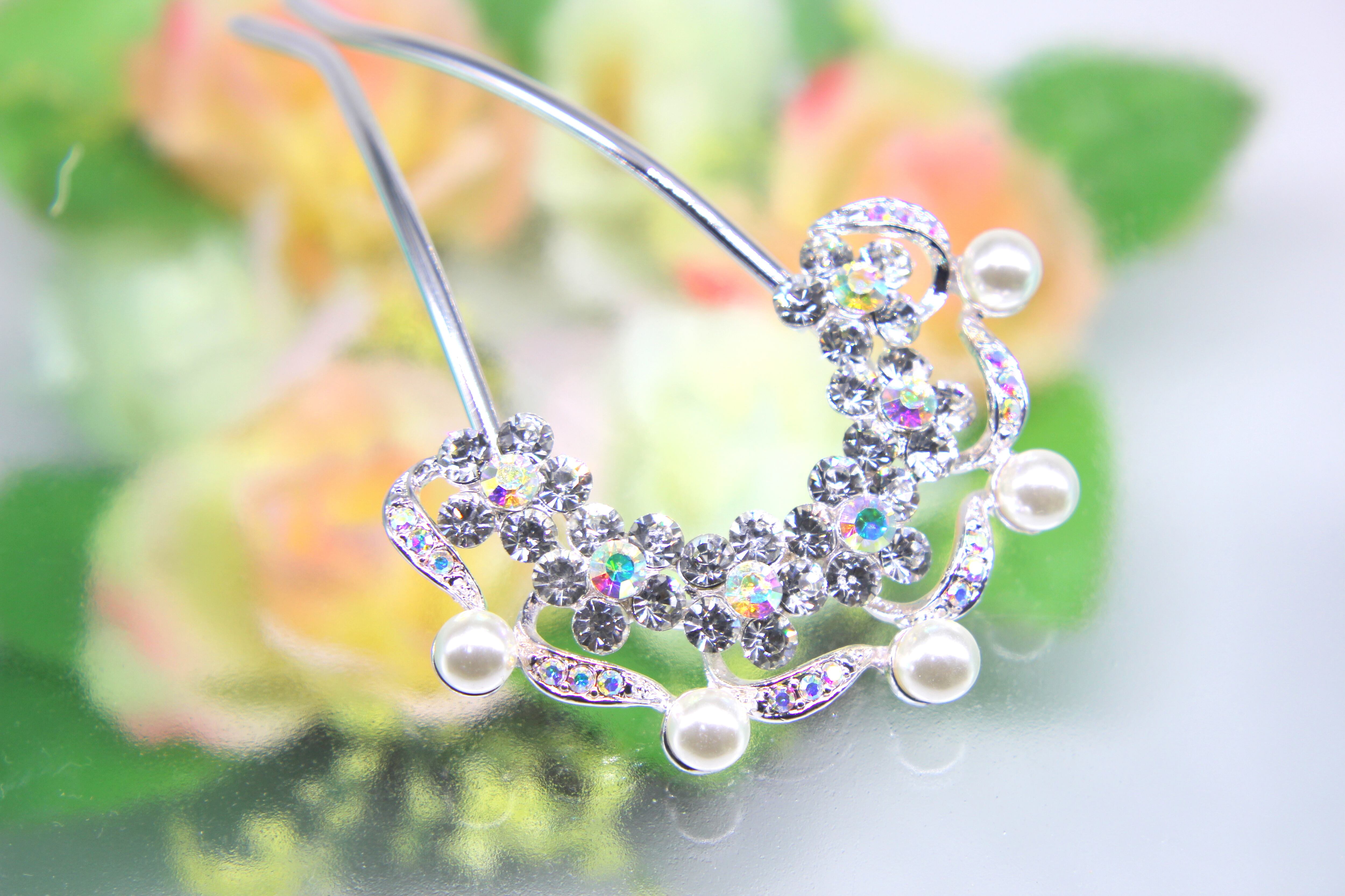 カラー: シルバー サイズ: 約11.0cm 素材: フェイクパール、ラインストーン