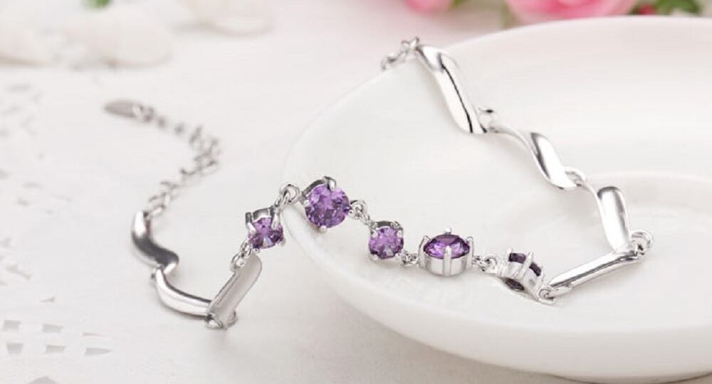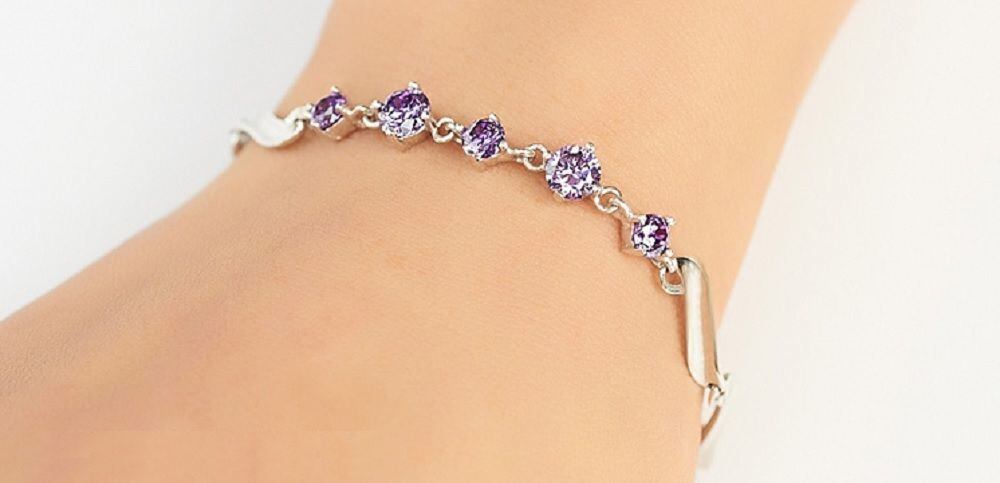 ブレスレット バングル フラワー ソリティア czダイヤ シルバー925 銀 パープル