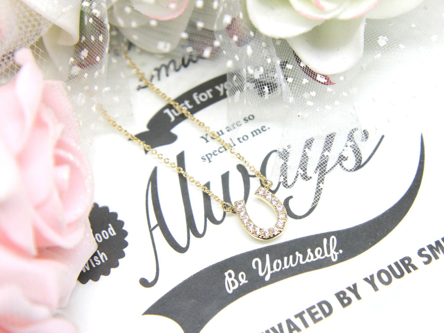 ネックレス レディース 馬蹄 馬鉄 華奢 キラキラ 華奢 czダイヤ ゴールド