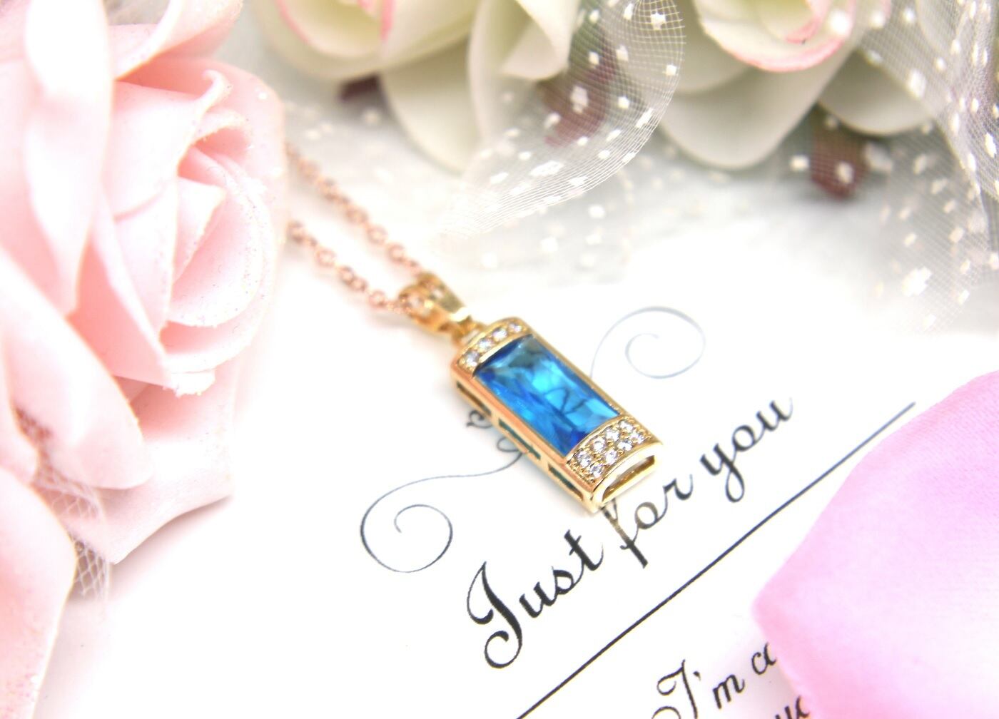 ネックレス レディース マリン ブルー czダイヤ ピンクゴールド チェーン 新