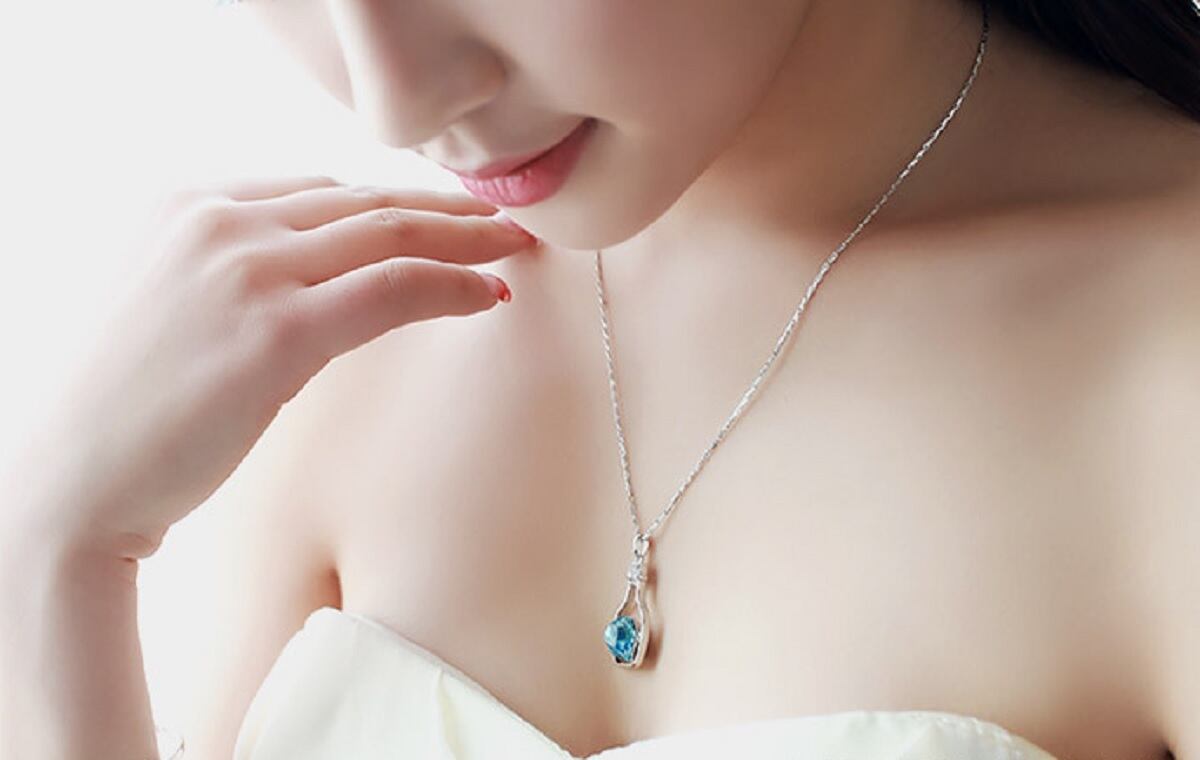ネックレス ペンダント ハート 小瓶 ボトル クリアシルバー ブルー czダイヤ レディース