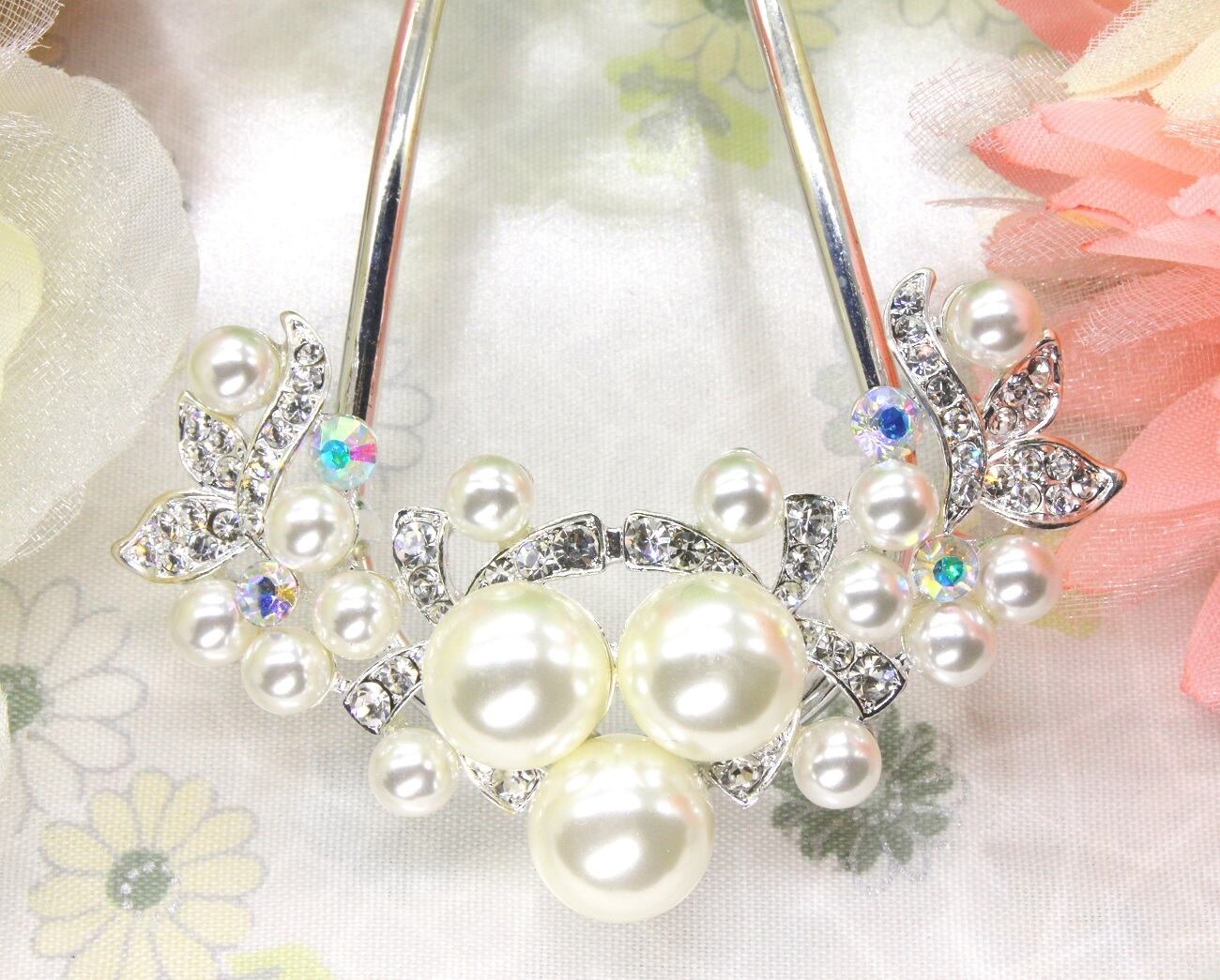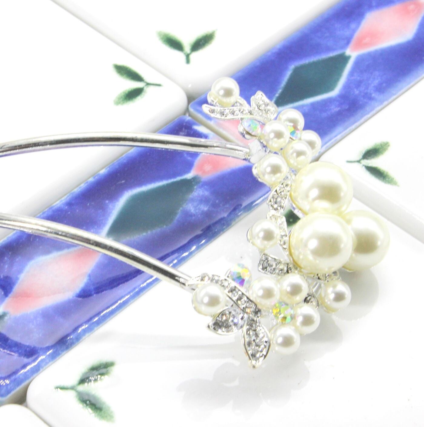 ◆華やかなボリュームのあるパールとラインストーンが優美でかわいいU型かんざしです。