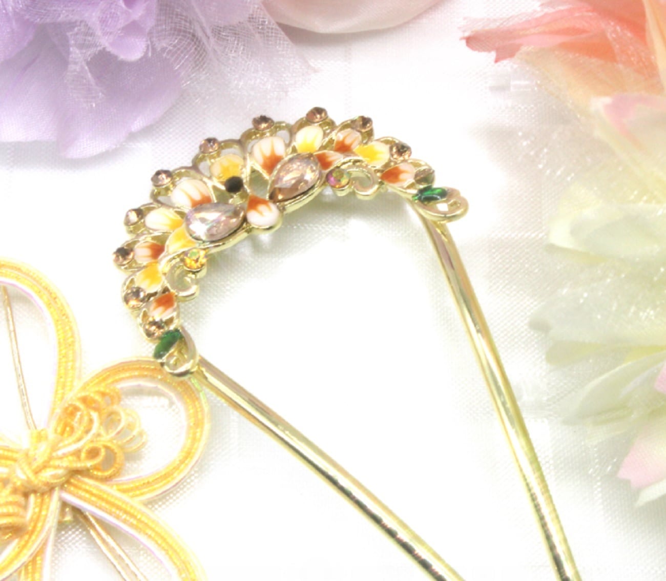 着物やドレス、 振袖、 留袖で充分活躍してくれます。 ヘアアクセとしてキラキラ輝いて、おしゃれでかわいい二又簪です