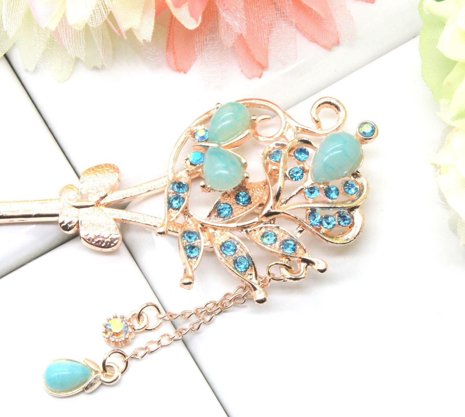 美しい花にとまる蝶々をデザインした簪は日本の和を愛する女性の美しさを演出してくれます。