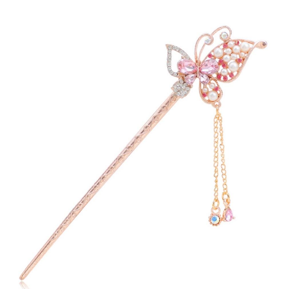 ◆ちょうちょの羽が羽ばたいたデザインモチーフにしたかわいいのかんざしが新登場です。ピンクゴールドのヘアスティックに人気モチーフの蝶々&フラワーデザインは日本の和の伝統的女性の美を演出してくれます。