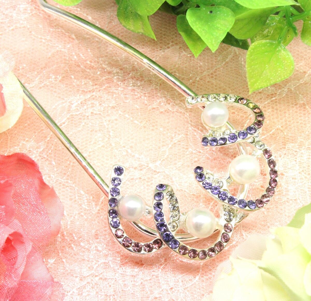カラー:パープル、シルバー サイズ:約11.5cm×5.2cm 素材:フェイクパール、CZダイヤモンド