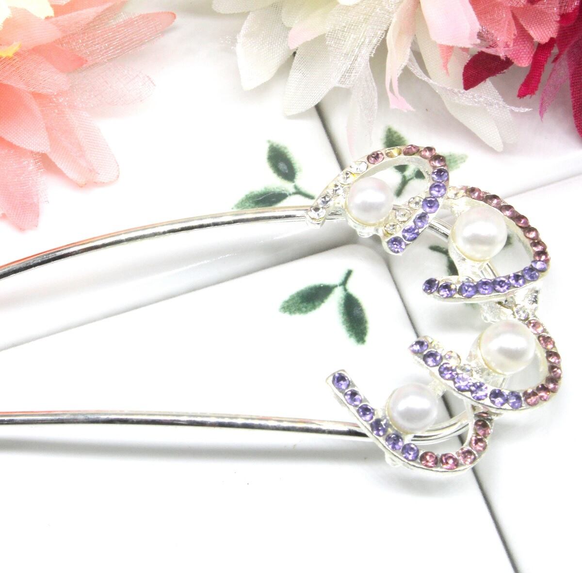 ◆華やかな蝶々とラインストーンが優美でかわいいU型かんざしです。