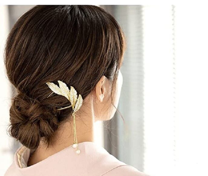 ◆リーフのデザインにキュービックジルコニアをセッティングした簪はキラキラと美しく輝き装いを格上げしてくれて、大人の女性はもちろん、お子様にもご使用できます。小ぶりなサイズですので、メインの髪飾りが物足りない時などにサイドアクセサリーとして、主張しすぎない穏やかなコーディネートとしてもご活用いただけます